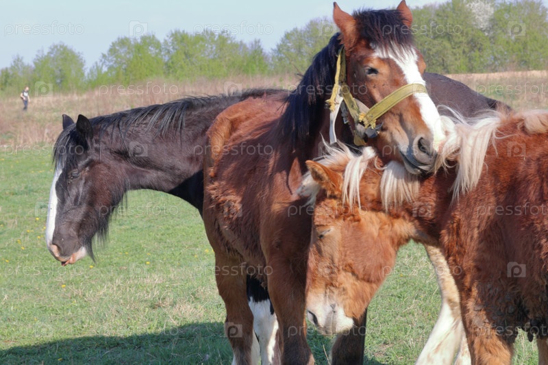 Лошади пасутся на лугу