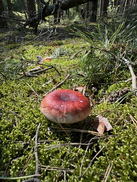 Крупный красный груздь. Растет в лесу на мху. Крупный план