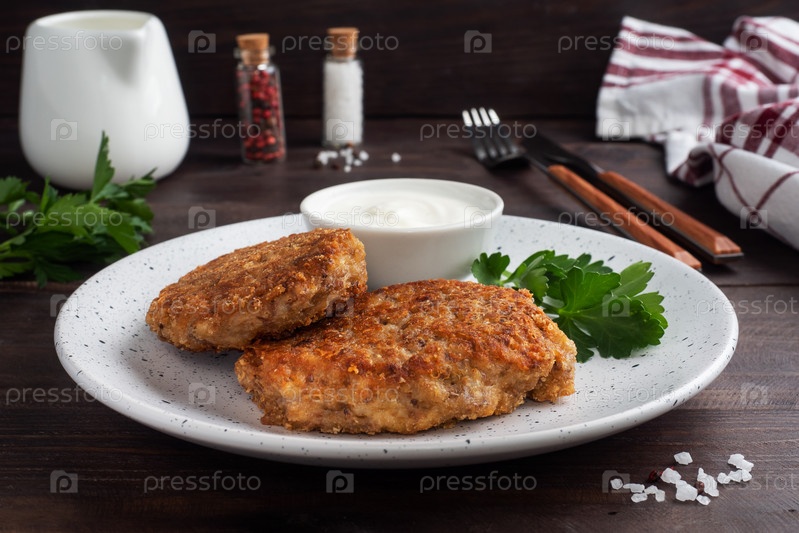 Гречневые котлеты с сыром и петрушкой на тарелке. Здоровое диетическое питание