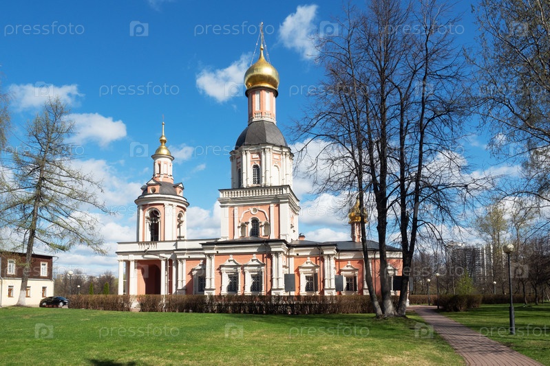 Москва, Россия - 26 апреля 2021 г.: Церковь Троицы Живоначальной Патриаршего подворья в усадьбе Свиблово
