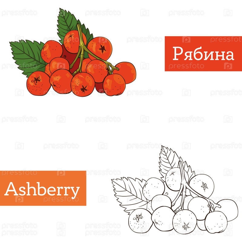 Иллюстрация рябина. Рябина цветная и черно-белая иллюстрация. Рябина вектор