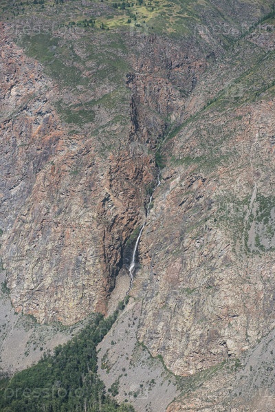 Водопад в долине реки Чулышман. Алтайские горы, Россия, прекрасный летний день