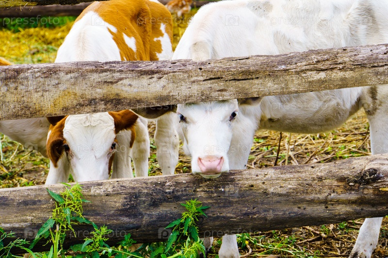 Сельский пейзаж. Телята