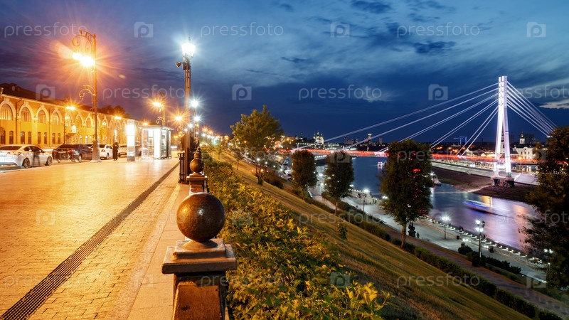Вид на северную часть Тюмени и мост Влюбленных с берега