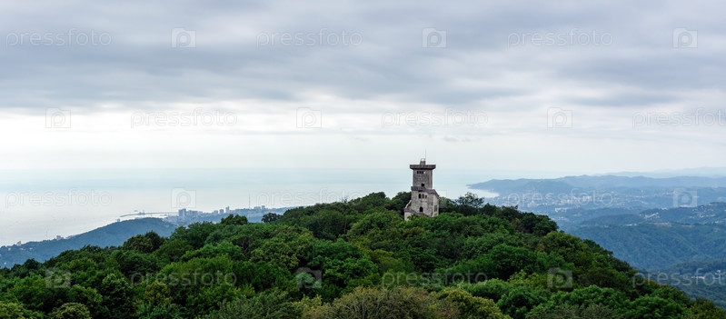 Вид на Кавказские горы и море в окрестностях Сочи