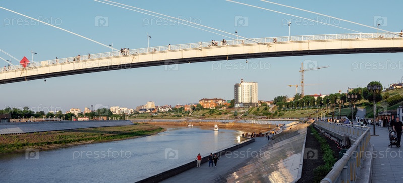 Вид на северную часть Тюмени и мост Влюбленных с берега