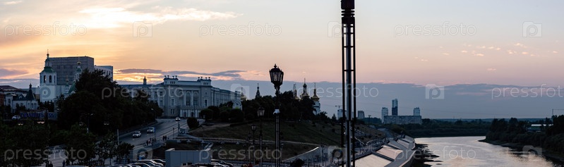 Вид на северную часть Тюмени и мост Влюбленных с берега