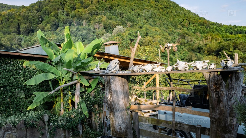 Кавказская деревня глубоко в горах с черепами крупного рогатого скота