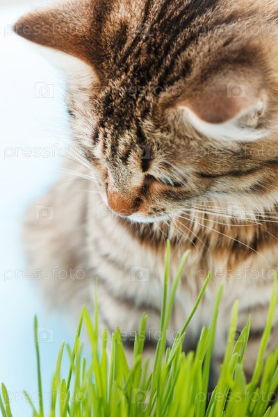 Кошка ест траву