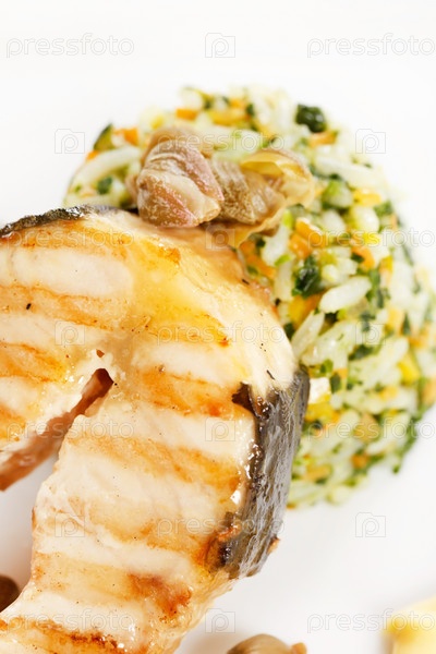 Стейк из рыбы с рисом