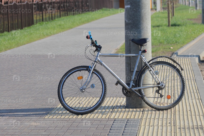 Велосипед стоит возле бетонного столба