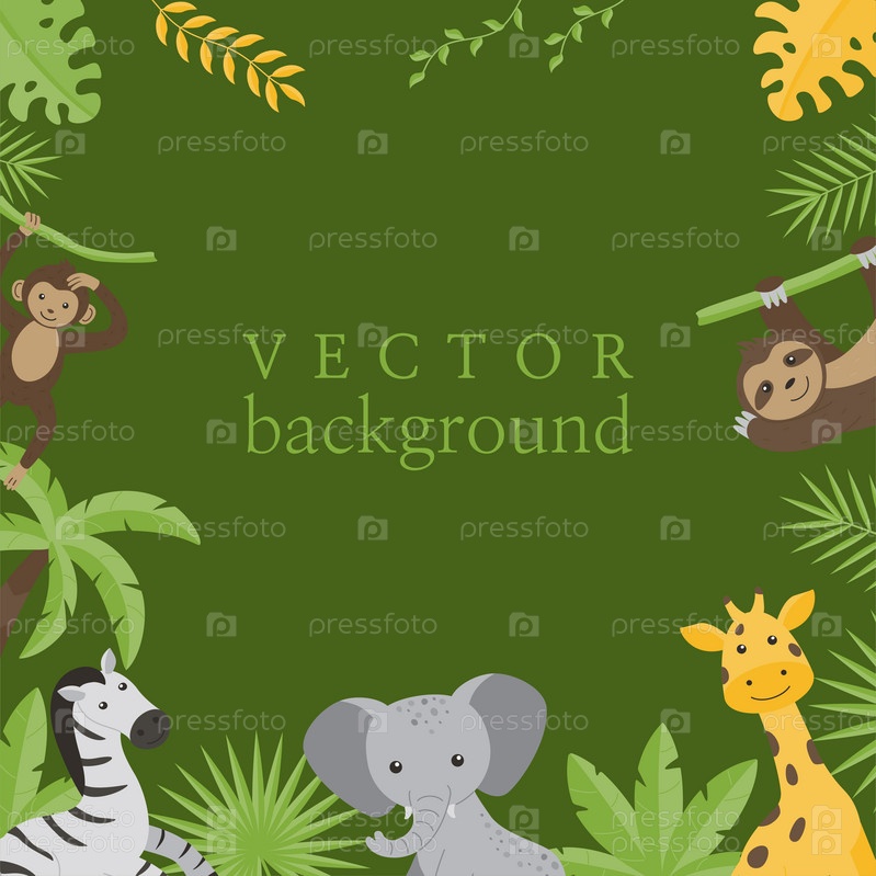 Детская квадратная пустая рамка с изображением диких животных джунглей