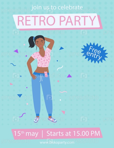 Плакат формата А4 с девушкой в спортивном костюме и телефоном в ретро-стиле