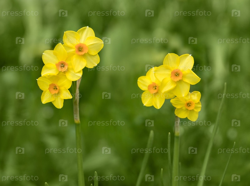 Нарцисс мартинетт или нарцисс цветок в саду. Красивые желтые цветы на зеленом фоне