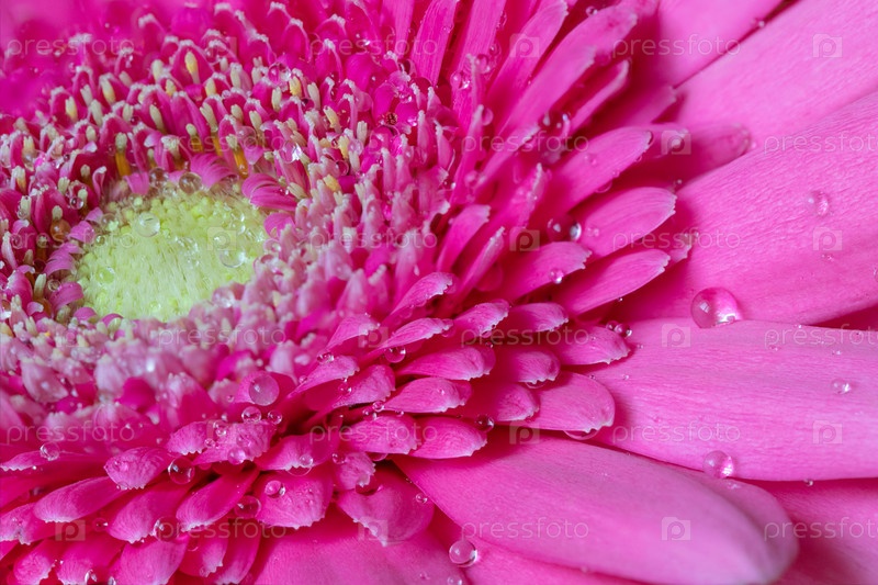 Красивая гербера в каплях воды. Розовый цветок крупным планом. Цветочный фон. Цветок герберы карты