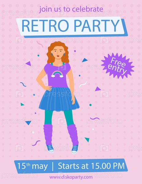 Плакат формата А4 с девушкой в футболке, юбке и леггинсах в стиле ретро