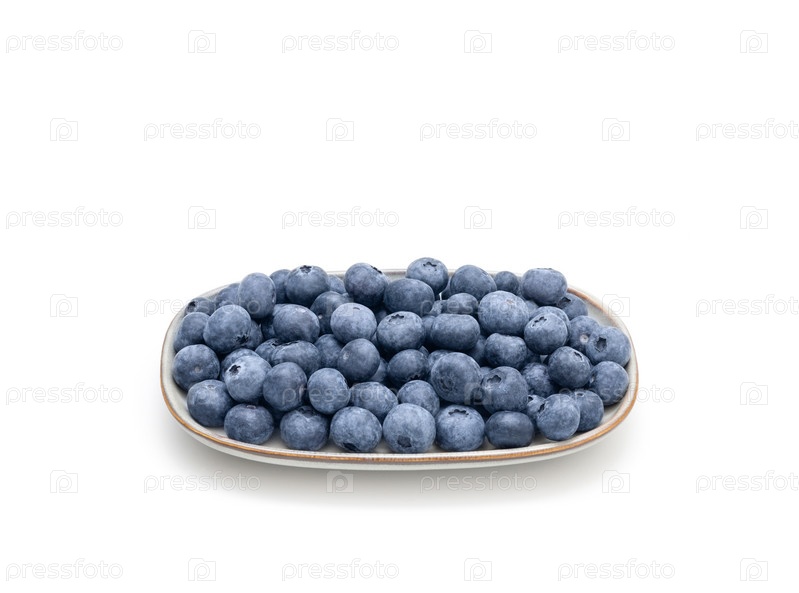Свежие чистые ягоды черники в тарелке, изолированной на белом фоне. Концепция здорового питания