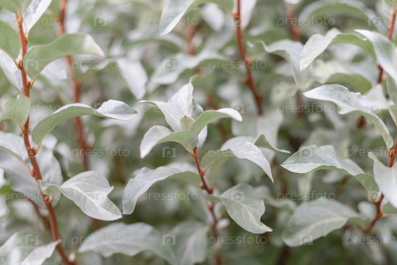 Elaeagnus commutata, серебристая ягода, серебряные листья кролика в крупном плане. ива волк декоративный куст в саду