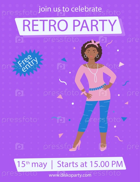 Плакат формата А4 с девушкой в тунике и леггинсах в стиле ретро