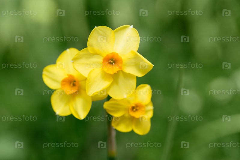 Красивый желтый цветок нарцисса на зеленом фоне крупным планом. Нарцисс Мартинетт — сорт с яркими желтыми цветами. Цветочный фон или открытка