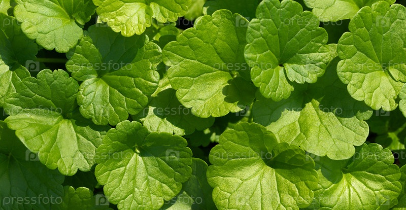 Зеленые листья текстура или фон. Земляной плющ, полевой бальзам, дикий змееголовник, плющелистный плющ крупным планом. Баннер