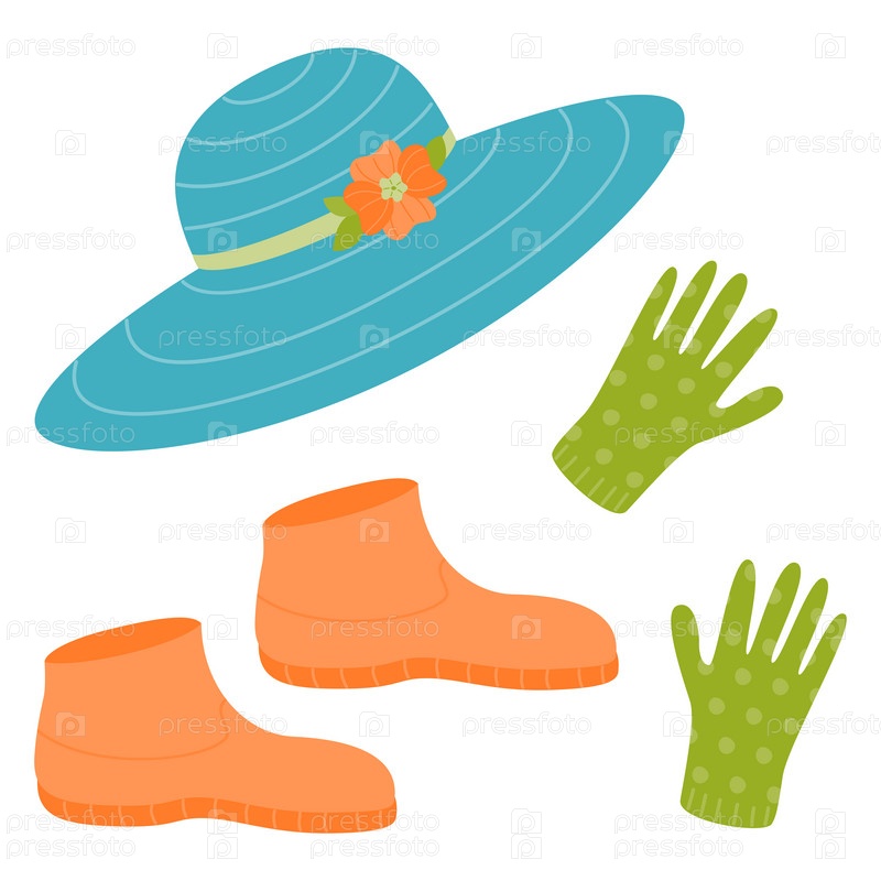 Набор принадлежностей для садоводства и отдыха - шапка, резиновые перчатки и сапоги