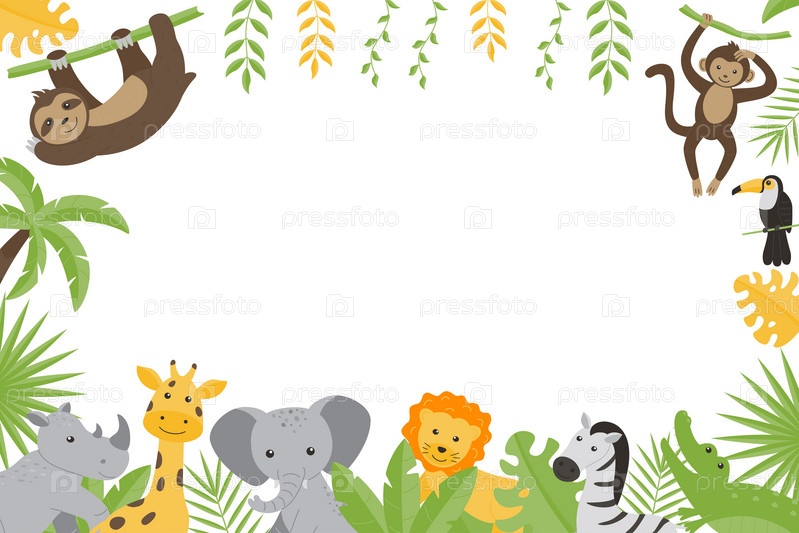 Детская горизонтальная рамка с изображением диких животных джунглей