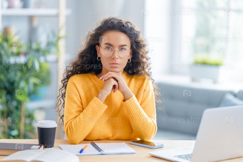 Женщина работает дома за ноутбуком