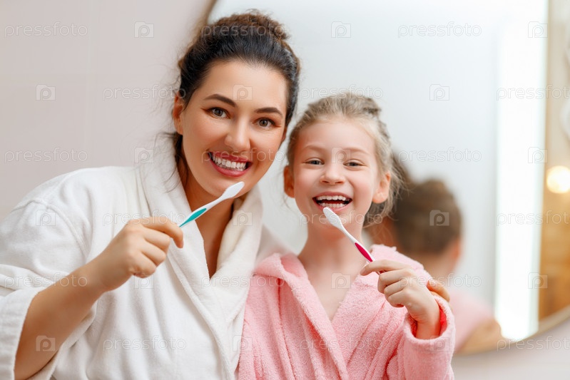 Семья чистит зубы