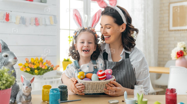 Счастливая семья готовится к Пасхе