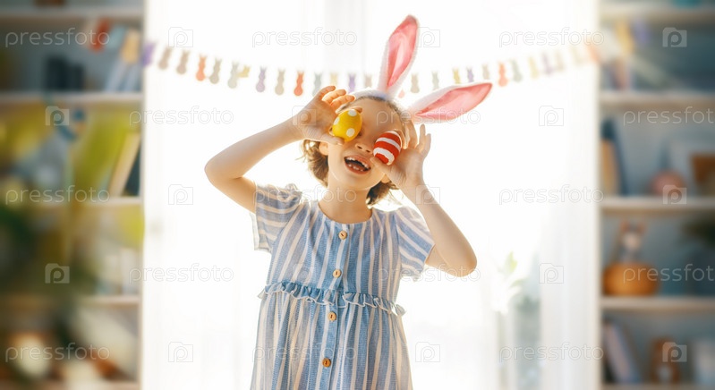 Ребенок с пасхальными яйцами, расписывающими яйца