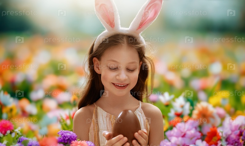 Ребенок с шоколадным яйцом на улице