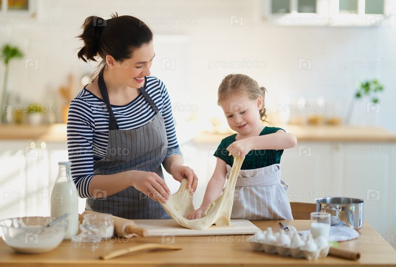 Семья готовит выпечку вместе