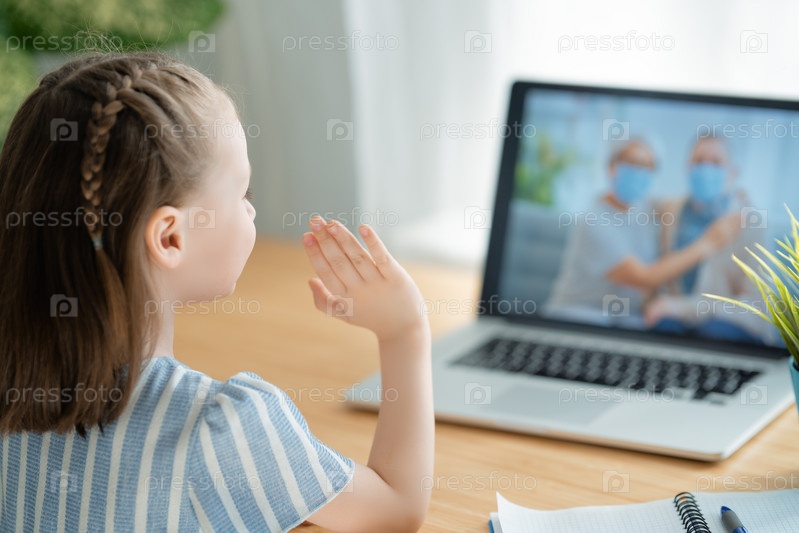 Пожилая пара разговаривает с внучкой