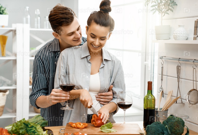 Влюбленная пара готовит правильную еду