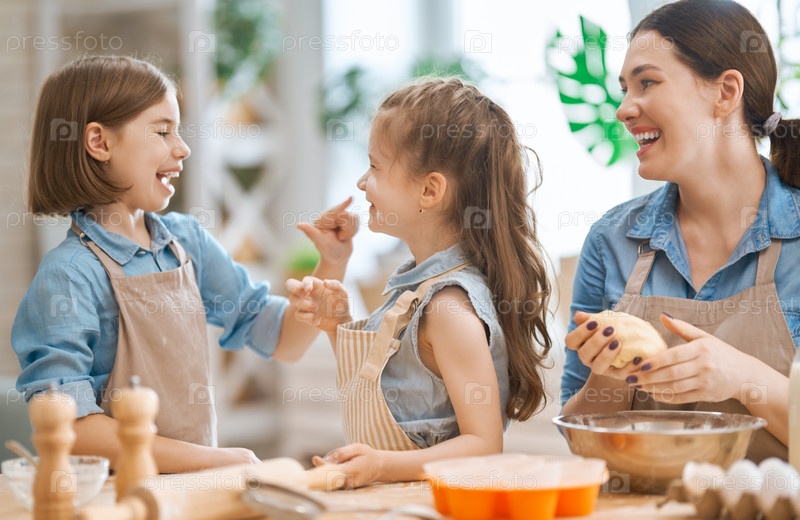 Семья готовит выпечку вместе