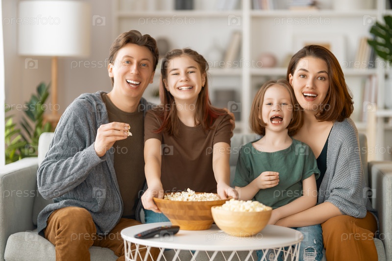 Мать, отец и дочери проводят время вместе