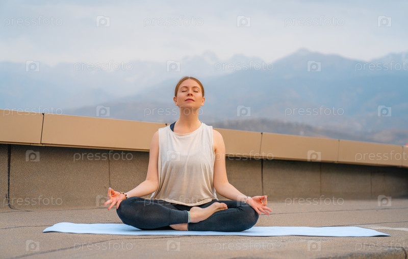 Спортсменка занимается йогой