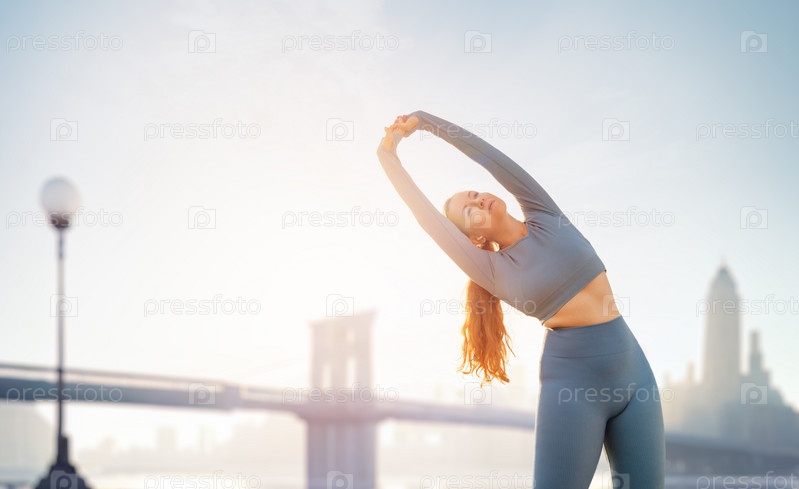 Молодая спортсменка разминается