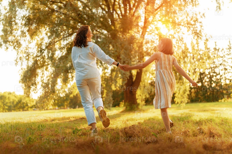 Счастливая семья на закате