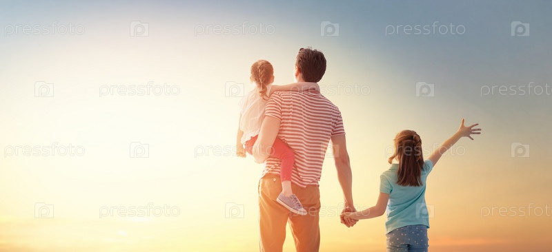 Счастливая семья на закате