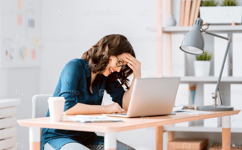 Женщина работает за ноутбуком
