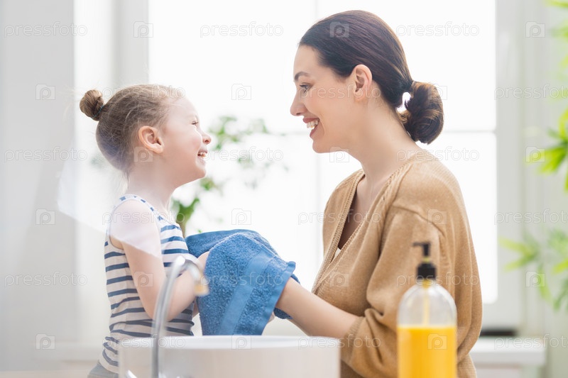 Девочка и ее мама моют руки
