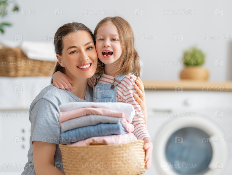 Семья занимается стиркой