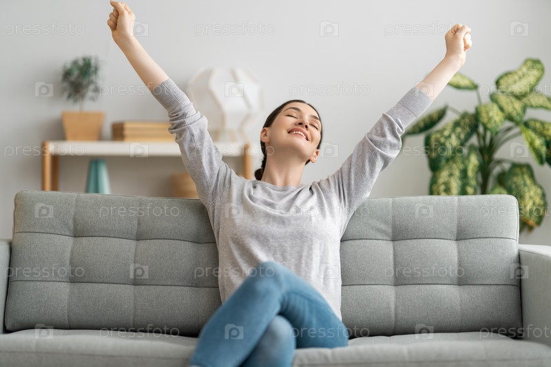 Женщина отдыхает на диване дома