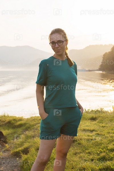 Портрет женщины на Телецком озере в горах Алтая, Сибирь, Россия. Красота летнего дня