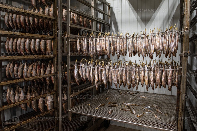 Концепция производства копченой рыбы: копченая рыба в коптильном коробе