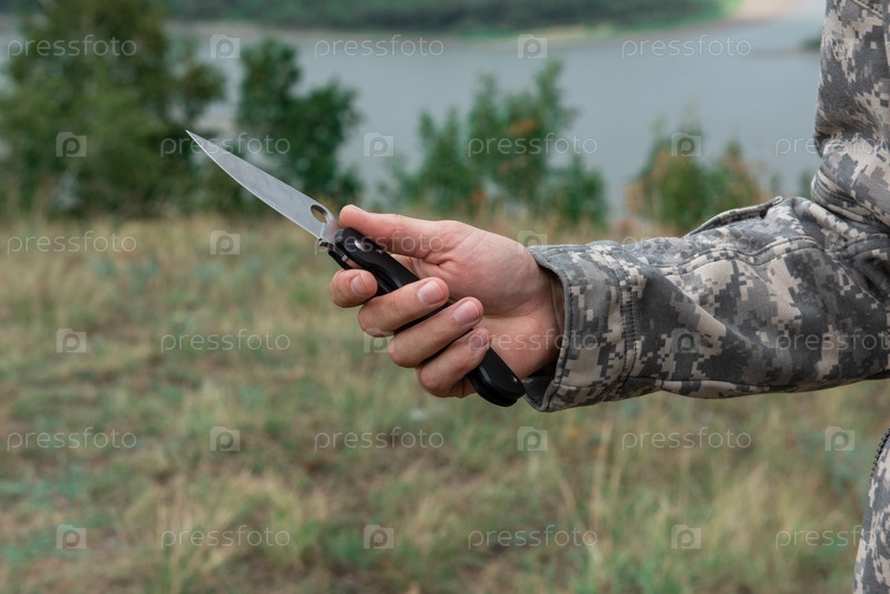 Мужчина с ножом в лесу