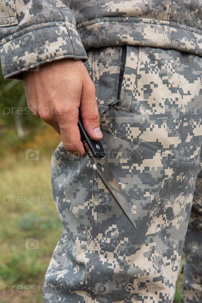 Мужчина с ножом в лесу