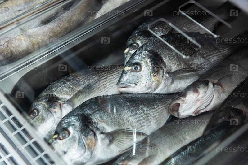 Рыба и морепродукты на рынке. Здоровое питание и концепция рыбного рынка